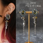 ピアスはキャッチに、イヤリングは蝶バネタイプにマルカンで下のデザインが取り外せるようになっています。
